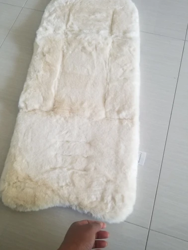 Наименование товара: коврик для коляскиРазмер: 35*78 смМатериал: ткань из искусственного кроличьего меха, наполнитель-губка, задняя часть-полиэстер.Применение: с ремнями безопасности для лучшей регулировки, подходит для большинства колясок и детских сидений.Инструкции по стирке: Ручная стирка или деликатная машинная стирка.