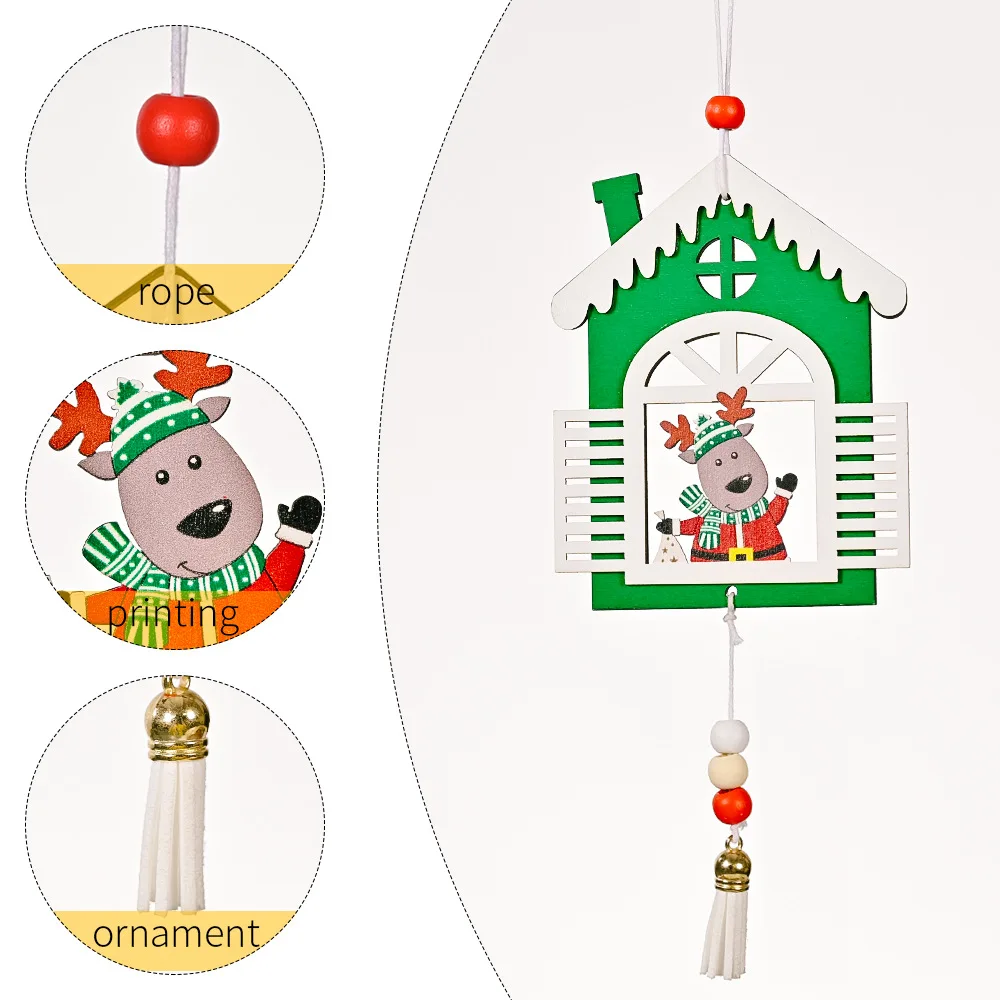 Рождественские украшения, деревянный маленький дом, подвеска с кисточкой, Рождественская елка, домашнее окно, праздничный Новогодний подарок, недорогой кулон