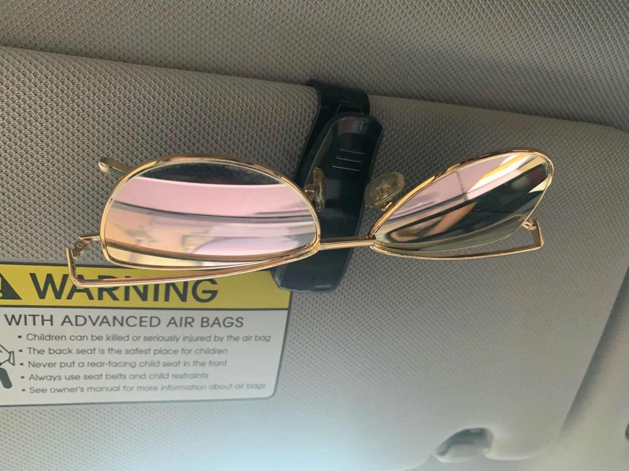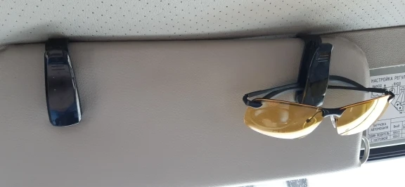 Надежно крепится к солнцезащитному козырьку, не мешает обзору водителя