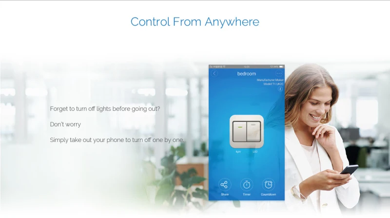 Пульт дистанционного управления для телефона даже при работе на улице, вы можете открыть приложение eWeLink, выключить все огни дома одним нажатием на телефон.