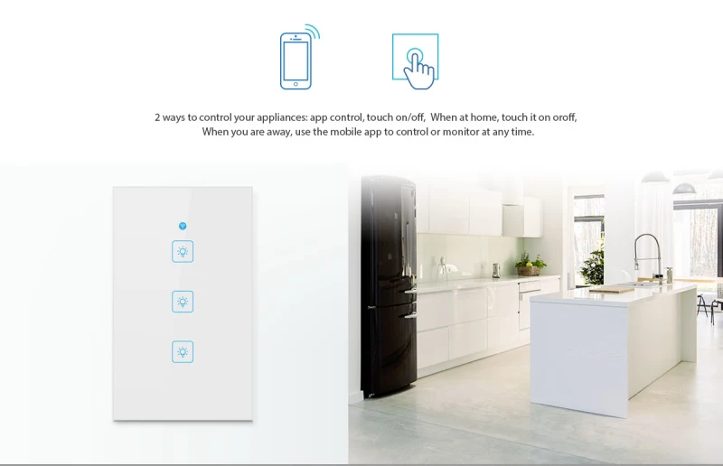 Сочетаются с бесплатным переключателем наклеек/маленькой круглой кнопкой, сочетающейся с бесплатным переключателем наклеек/маленькой круглой кнопкой, нет необходимости в проводке, можно разместить в любом месте вашего дома для управления. (Контроллер RF должен быть приобретен самостоятельно)
