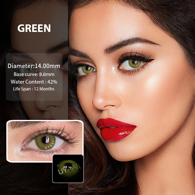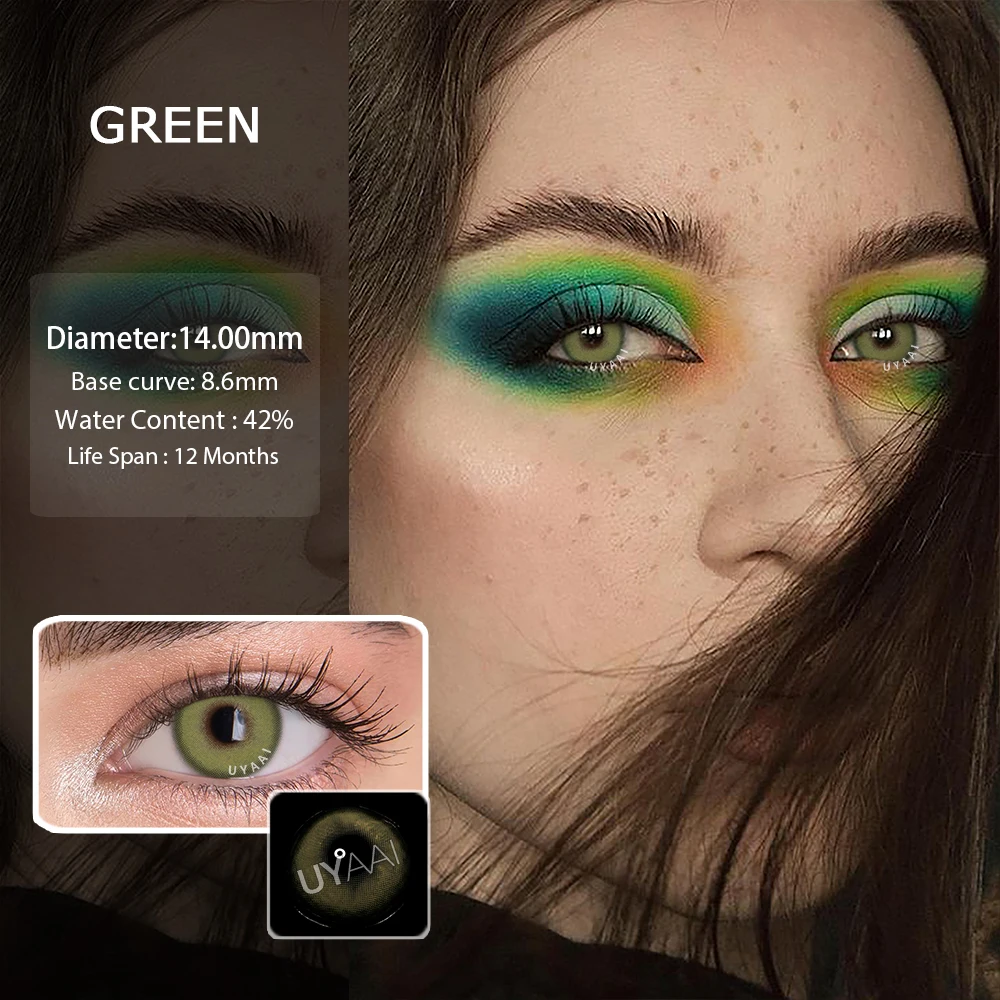 Линзы для глаз годовые зеленые, глазные контактные линзы контактные...
