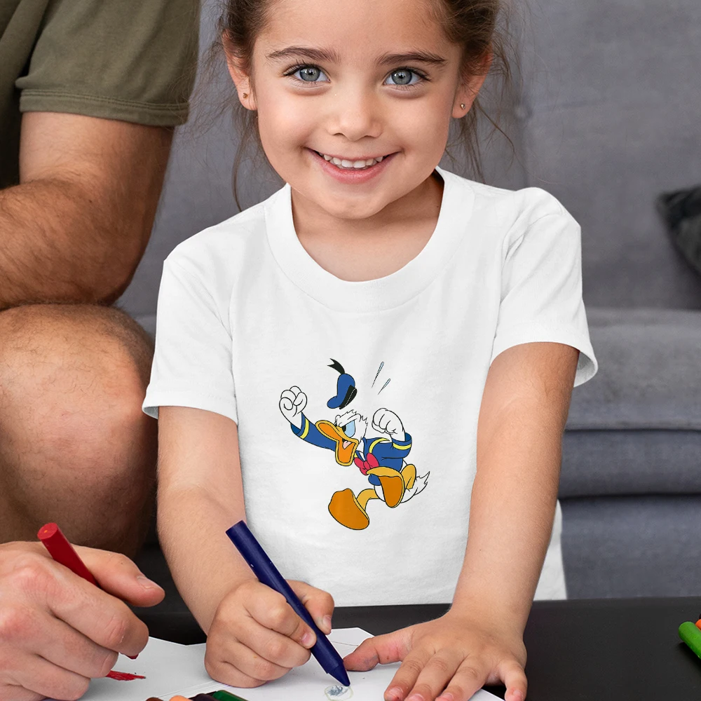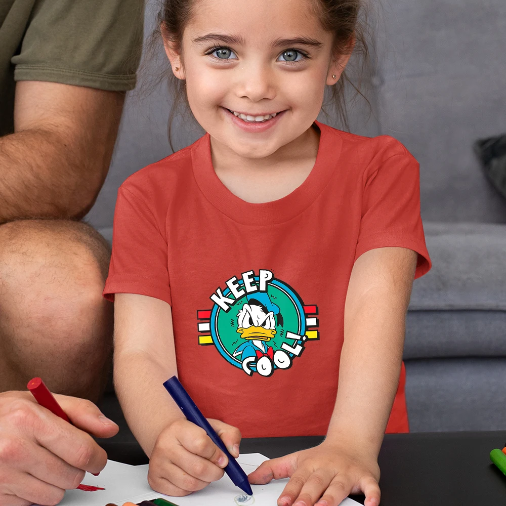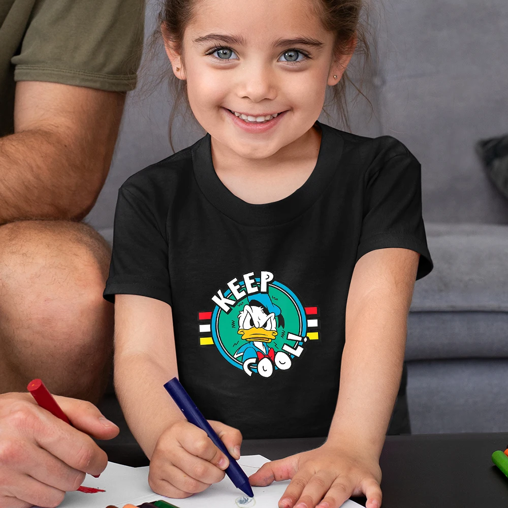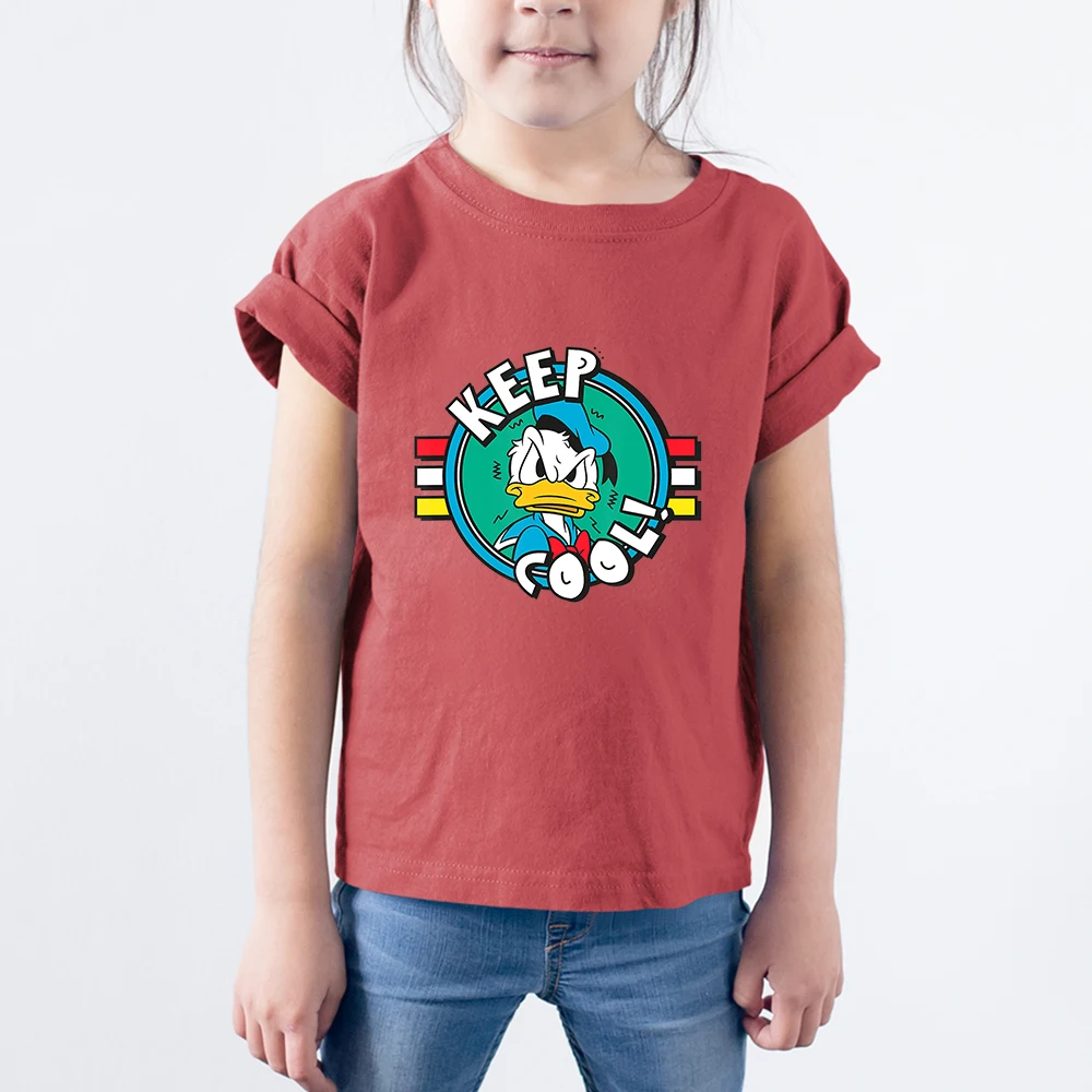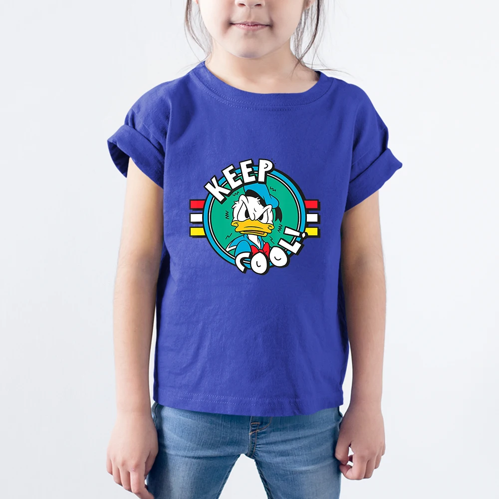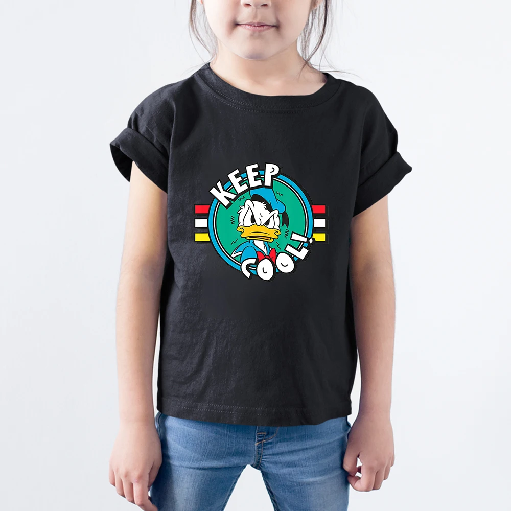 Letters KEEP COOL Детские футболки с Дональдом Даком Диснея, модные летние новые футболки унисекс, удобная детская футболка с короткими рукавами