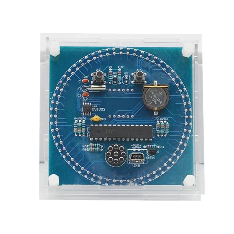 Вращающийся светодиодный Будильник Электронный модуль часов лампа для воды DIY Kit светильник контроль температуры DS1302 C8051 MCU STC15W408AS