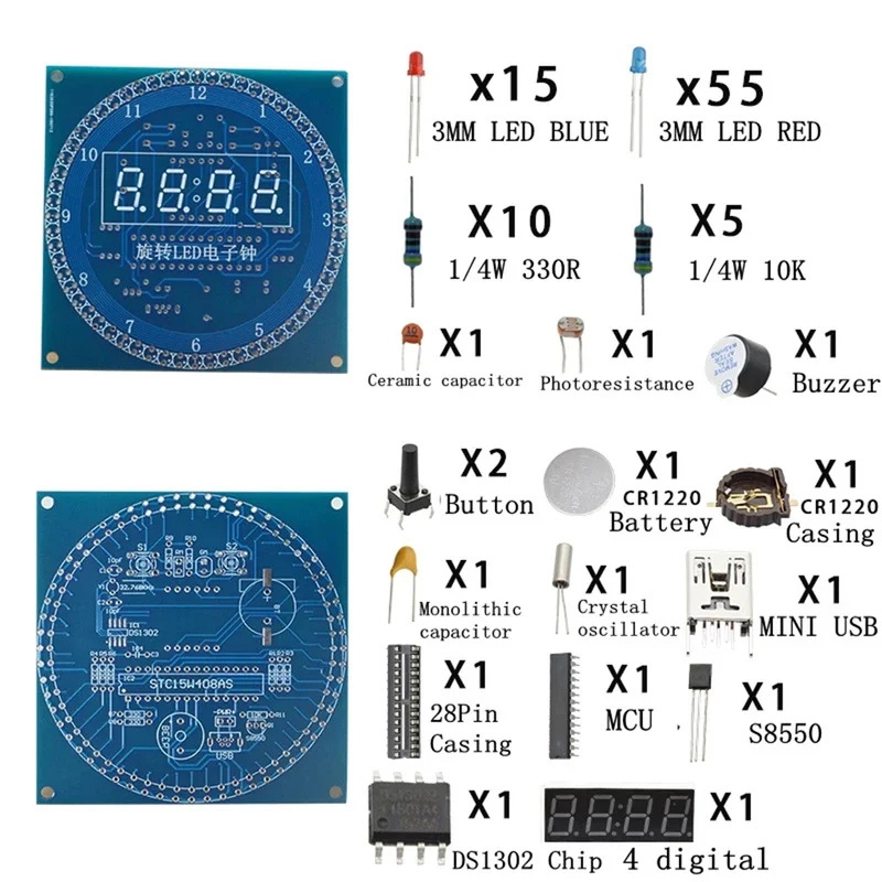 Вращающийся светодиодный дисплей, будильник, электронный модуль часов, водяная лампа, набор сделай сам, контроль светильник туры света DS1302 C8051 MCU STC15W408AS
