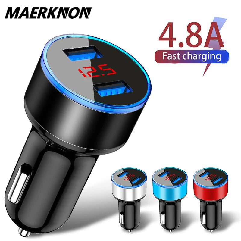 4.8A 5V Dual USB Автомобильное зарядное устройство со светодиодным ...