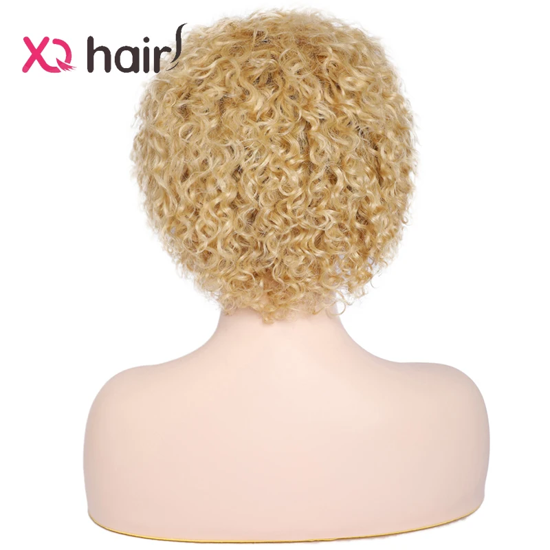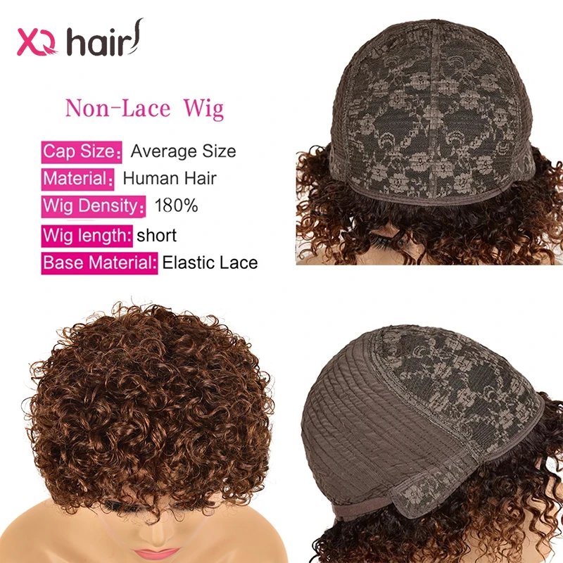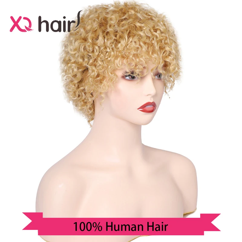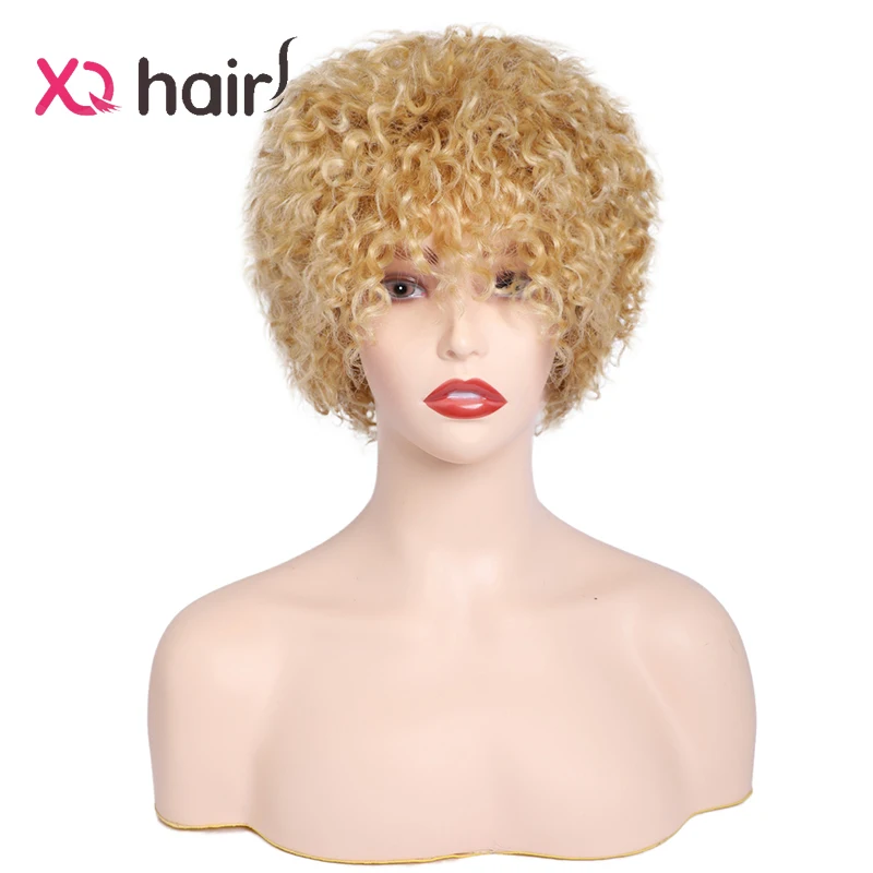 Короткие вьющиеся человеческие волосы XQ, парики для чернокожих женщин, парики боб, водные волны, без кружева, передние парики, Короткие вьющиеся парики с челкой