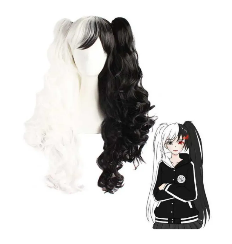 Женский длинный парик для косплея, черно-белый парик из Dangan Ronp...
