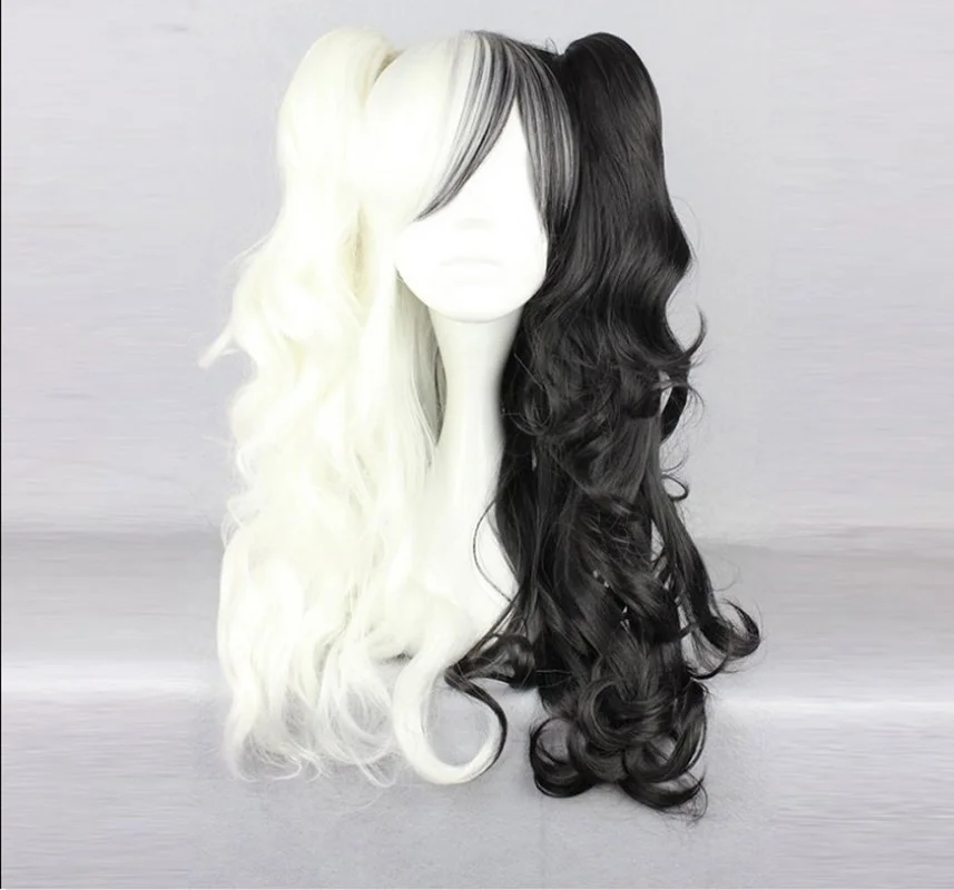 Парик для косплея Danganronpa Monokuma женский с длинными вьющимися хвостиками, термостойкие синтетические волосы для костюма белого и черного цвета с шапочкой