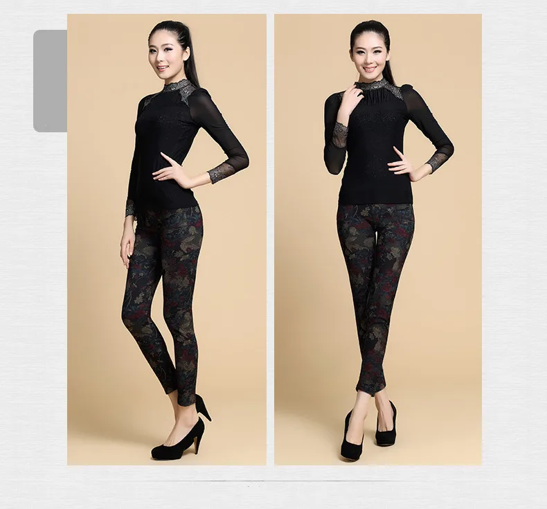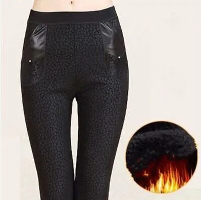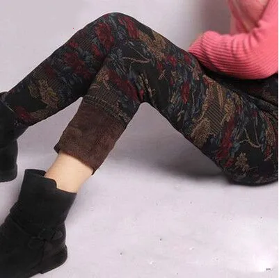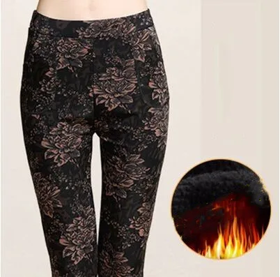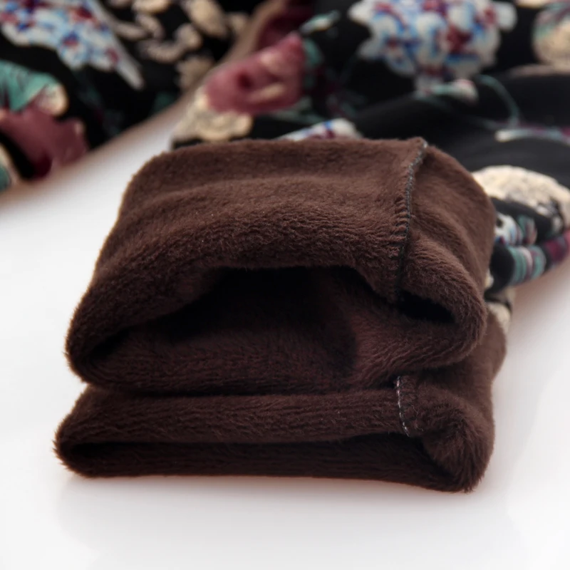 Женские осенне-зимние Бархатные Теплые брюки, женские плотные флисовые облегающие брюки, брюки, кашемировые леггинсы-карандаш с цветочным принтом