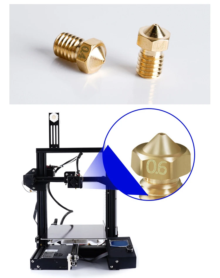 2. Применимость и совместимость: Наши сопла подходят для 3D-принтеров Makerbot Creality CR-10, MK8 Makerbot Reprap Prusa I3, совместимы со всеми 3d-принтерами PLA ABS 1,75 мм. По размеру точно как оригинал.