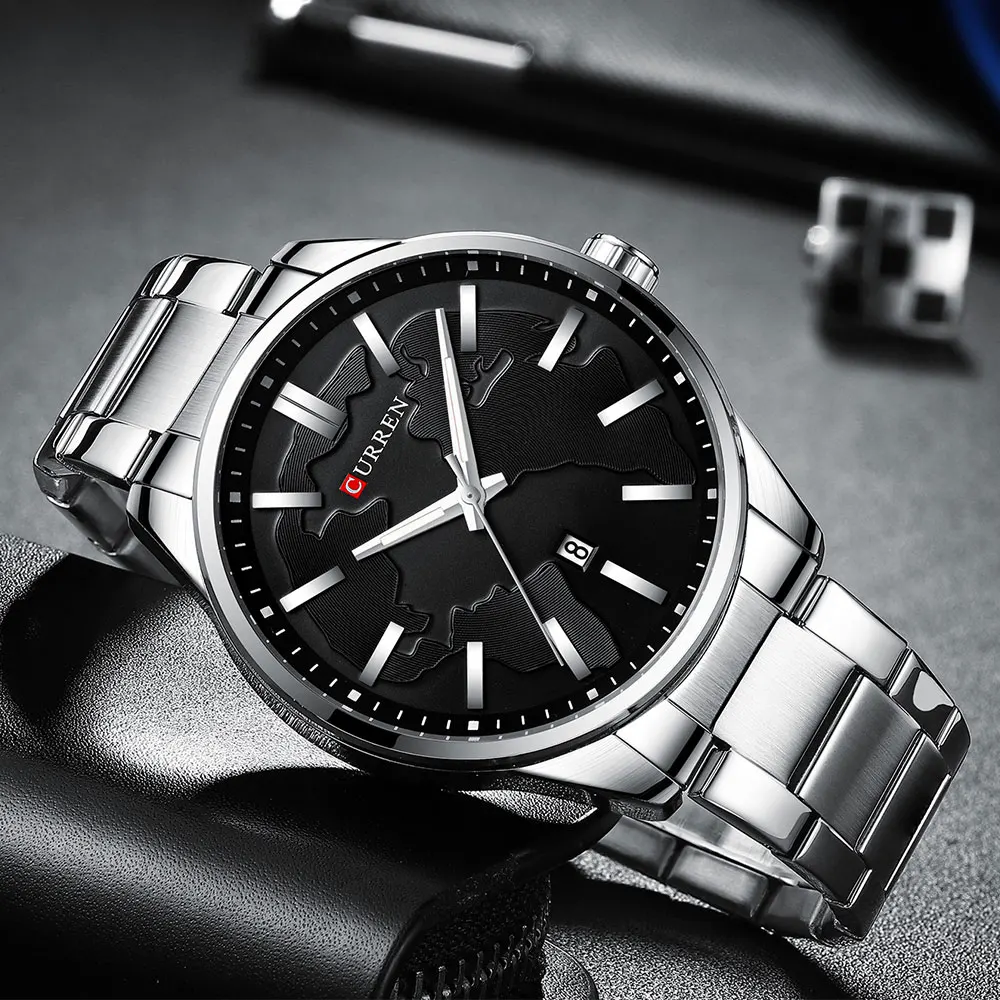 CURREN Модные Бизнес часы для мужчин Креативный дизайн циферблат Кварцевые часы из нержавеющей стали ремешок наручные часы Relogio Masculino