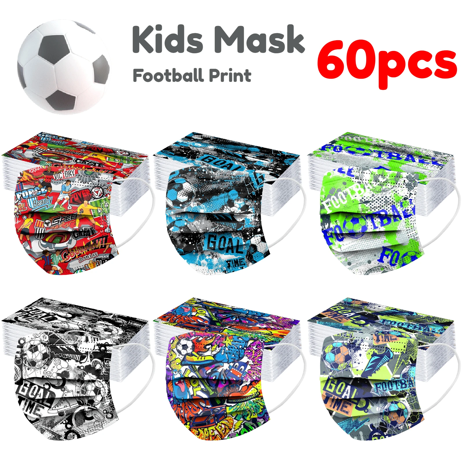 60 шт., одноразовые маски для лица с принтом футбольных мячей