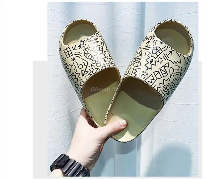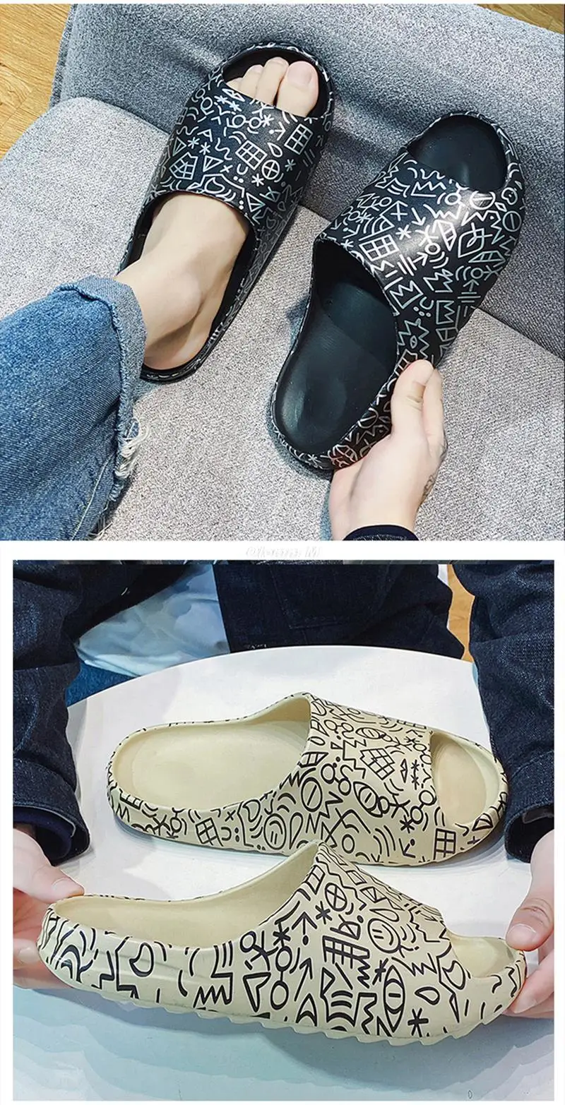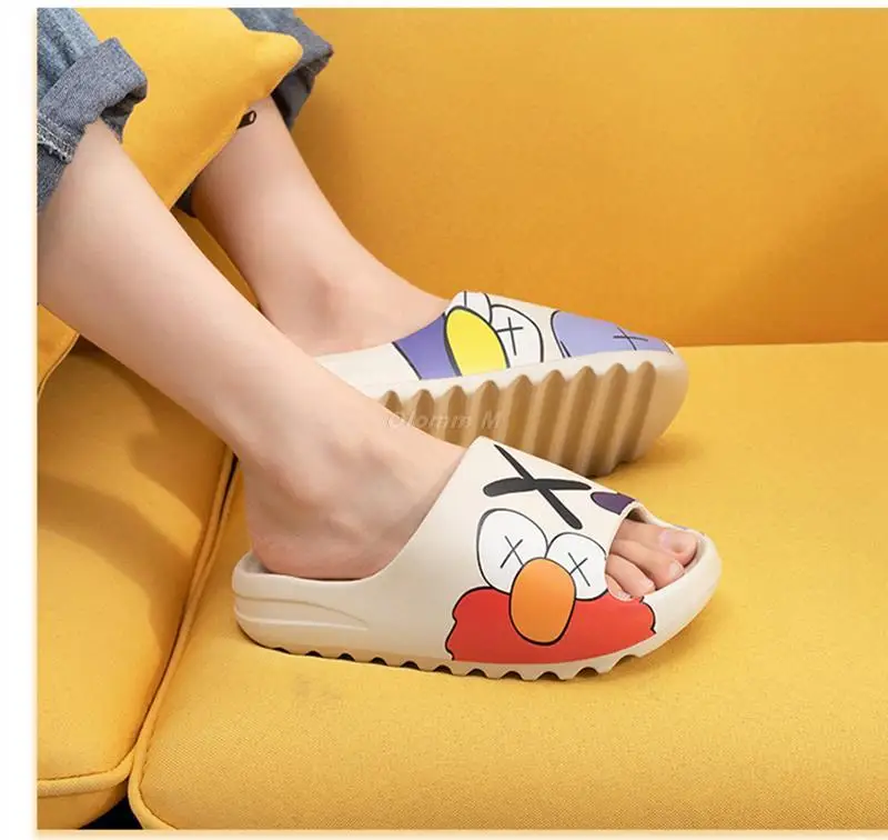 Шлепанцы унисекс пляжные, мягкие Нескользящие, на платформе, с открытым носком, Симпатичные сандалии с мультяшным рисунком, для мужчин и женщин
