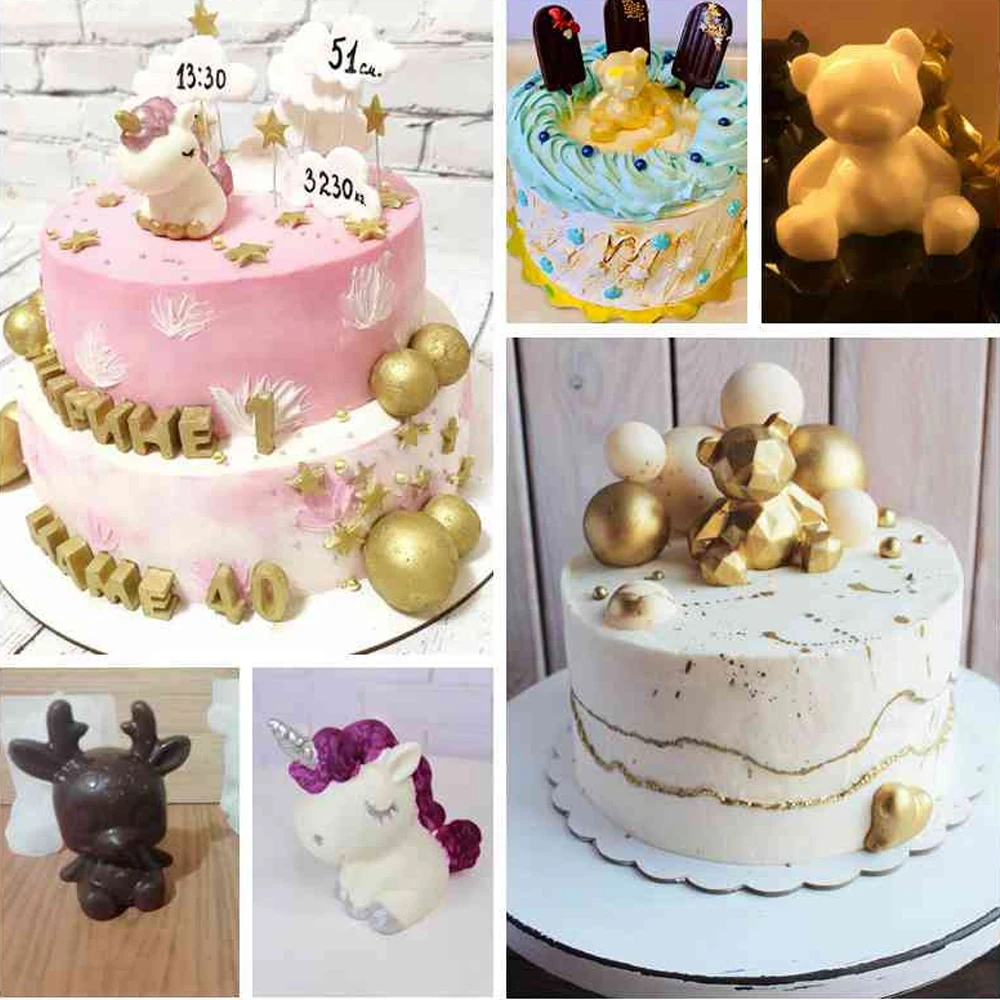 Силиконовая 3D форма сделай сам, геометрия, стерео, медведь, олень, кошка, фотоформа для украшения торта, инструменты для украшения