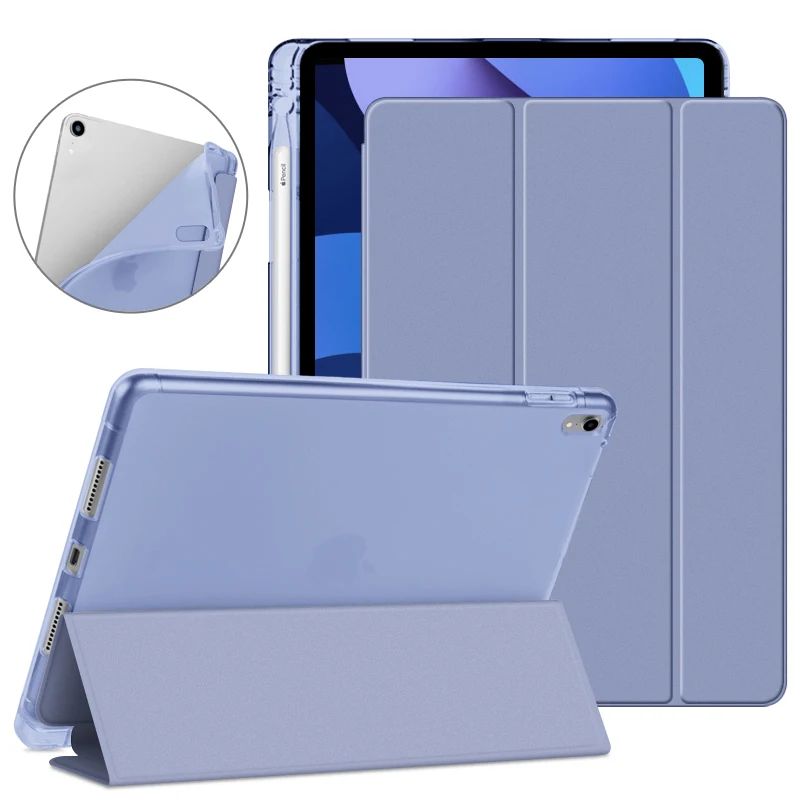 Наша запатентованная подушка безопасности матовая прозрачная защитная крышка Передняя трехслойная смарт-крышка изготовлена из полиуретана и мягкого трогательного прорезиненного покрытия на внутренней стороне и внешней стороне задней оболочки, которая чувствует себя хорошо в руках и делает ее менее скользкой. Это цельный чехол, спереди и сзади не отделяется