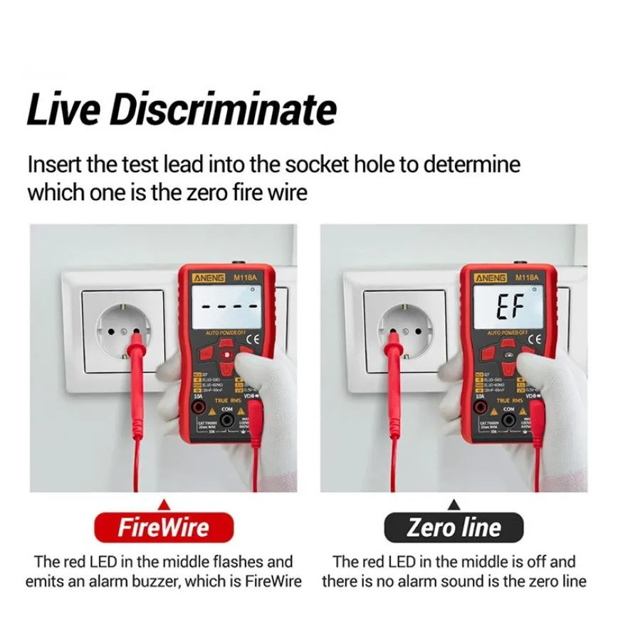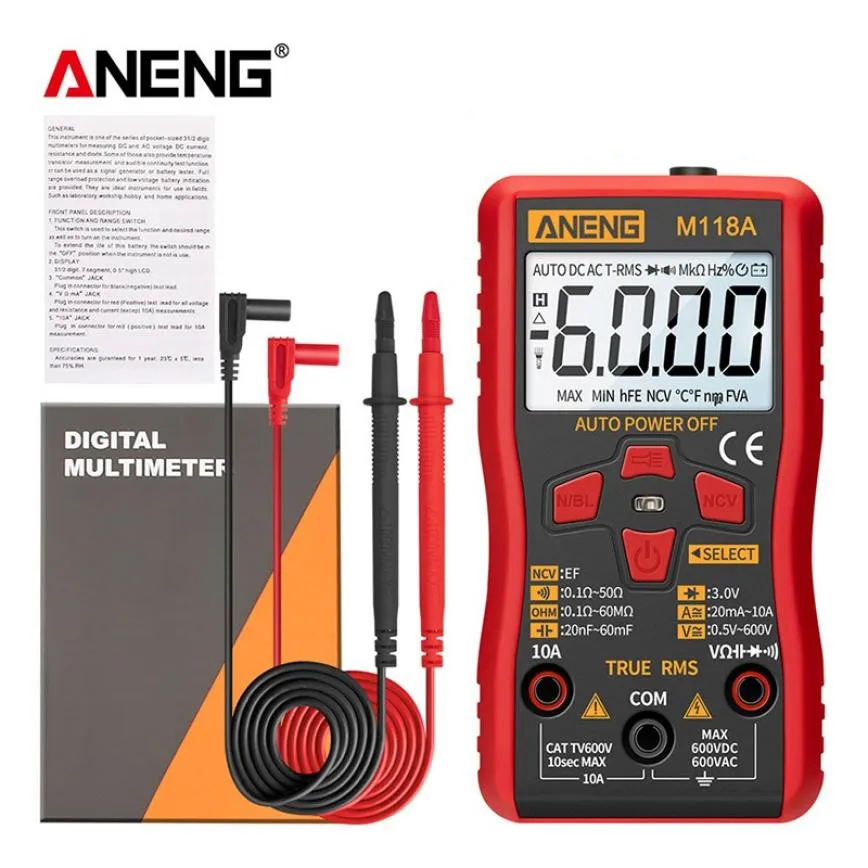 Цифровой мини-мультиметр ANENG M118A, тестер True Rms, автоматический измеритель Mmultimetro Tranistor с бесконтактным индикатором напряжения, Data Hold, 6000 отсчетов, фонарик