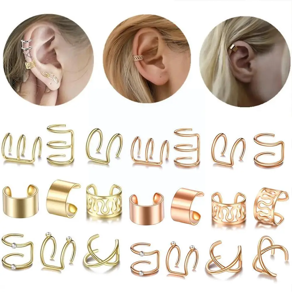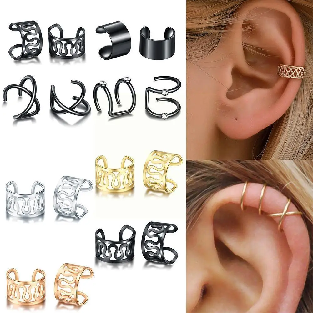 Модные стильные серьги-клипсы в виде искусственных манжет и листьев, ювелирные изделия, серьги для хряща для женщин, подъемники для пирсинга Fak