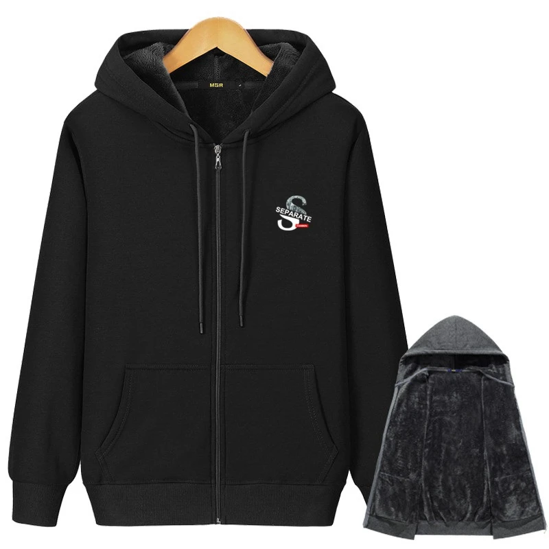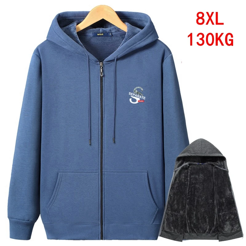 Кофта Мужская размера плюс на молнии с капюшоном, Толстая теплая то...