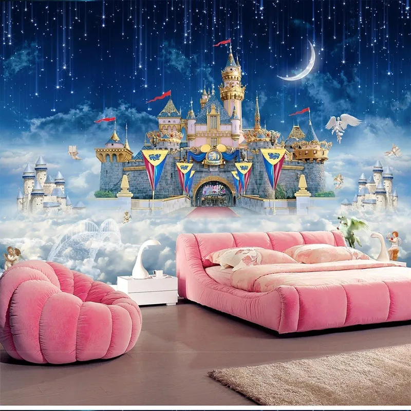 Самоклеящиеся водонепроницаемые 3D-обои на заказ, стикеры с изображением сказочного неба, замка, звездного фона для детской комнаты, домашний декор