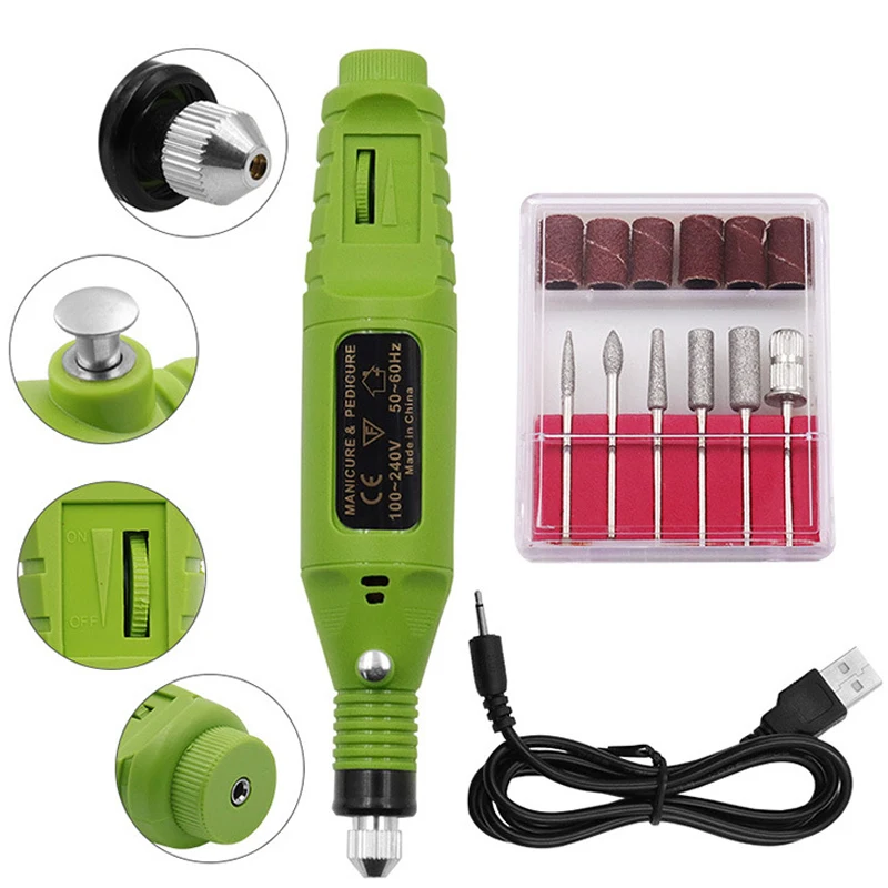 Фрезер Электрический USB для ногтей, устройство для дизайна ногтей, средство для удаления омертвевшей кожи, портативный аппарат для маникюра и педикюра