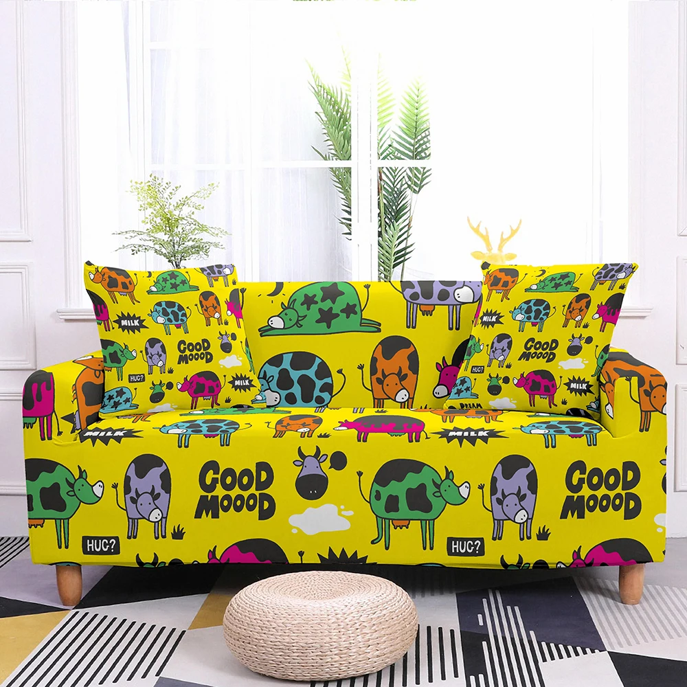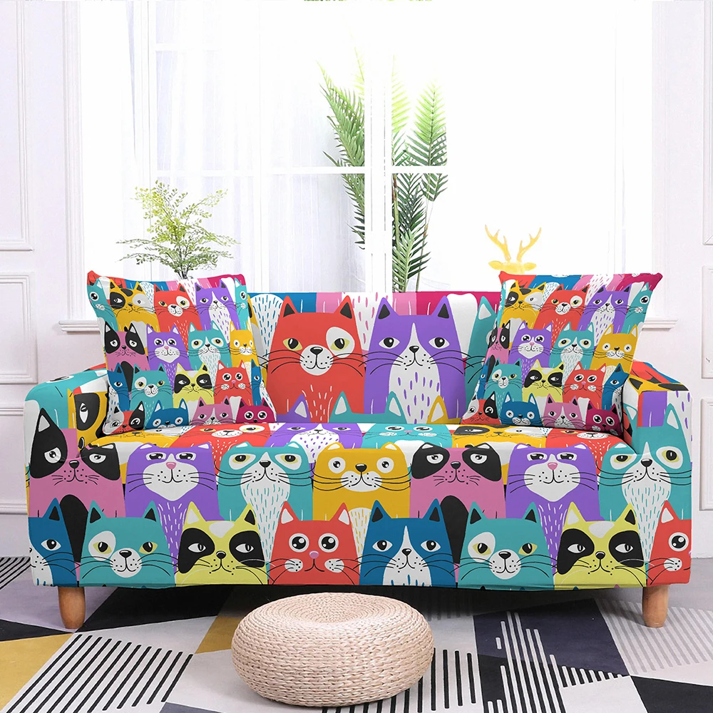 Эластичные Чехлы для дивана в гостиную, растягивающиеся Чехлы для дивана в виде мультяшного кота, чехол для углового дивана в форме L