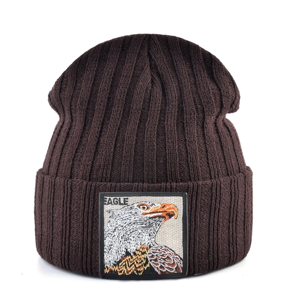 Модные вязаные шапочки бини с вышивкой лисы патч зимние теплые вяза...