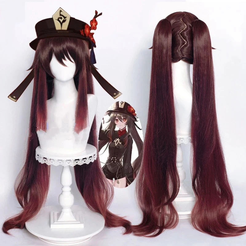 Парик для косплея Ху Тао Genshin Impact HuTao, длинные коричневые термостойкие синтетические волосы 110 см, парики для косплея аниме + шапочка для парика