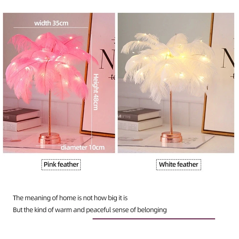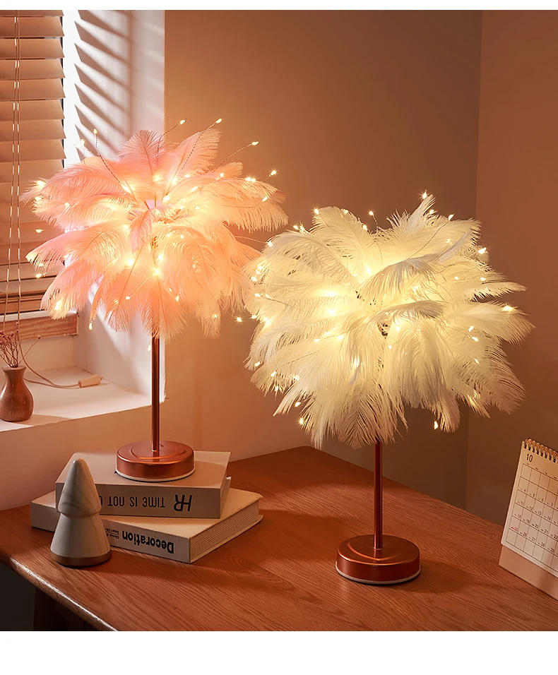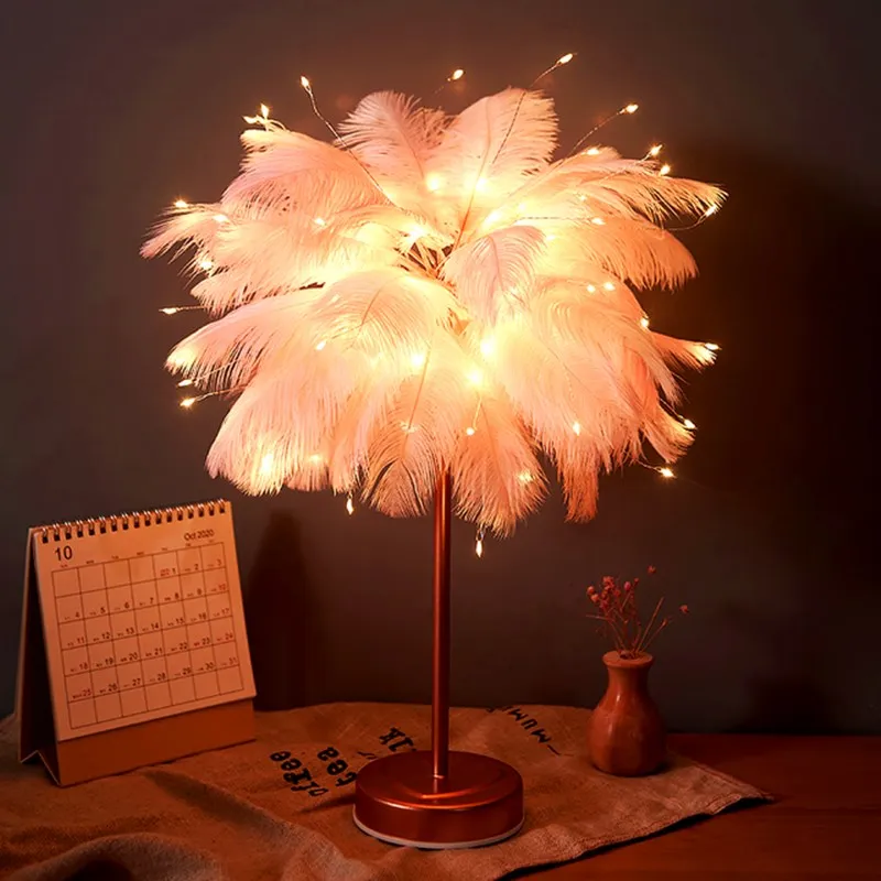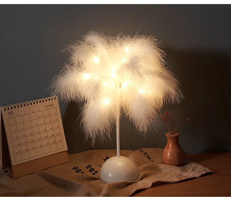USB Сказочный светильник с перьями, настольная лампа с питанием от батарейки AA, креативный теплый светильник, абажур с перьями дерева, декор для свадьбы, дома, спальни