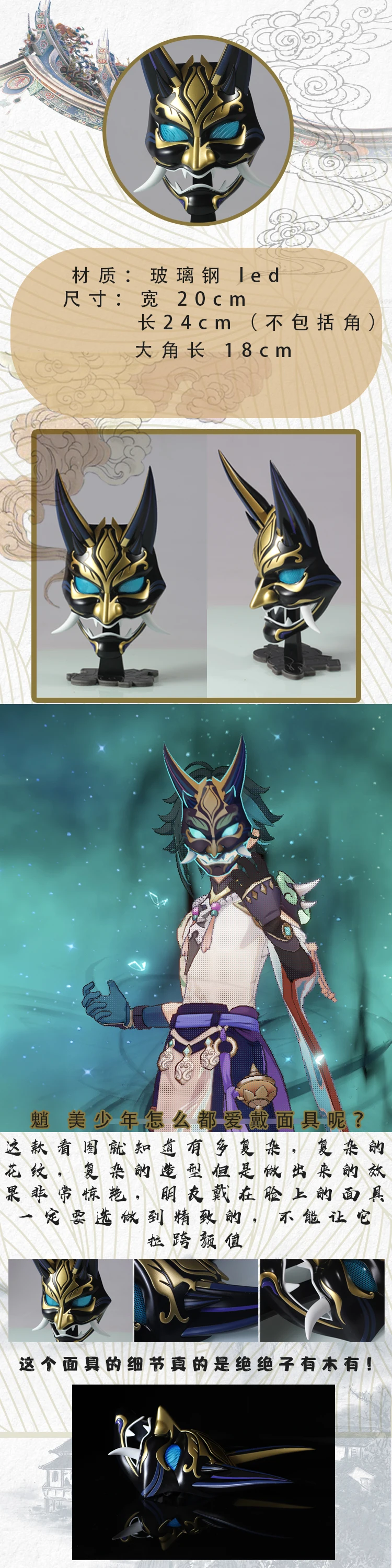 Маска для косплея Game Genshin Impact Xiao, реквизит для косплея из искусственного стеклопластика, реквизит для косплея на Хэллоуин, светящаяся маска Xiao