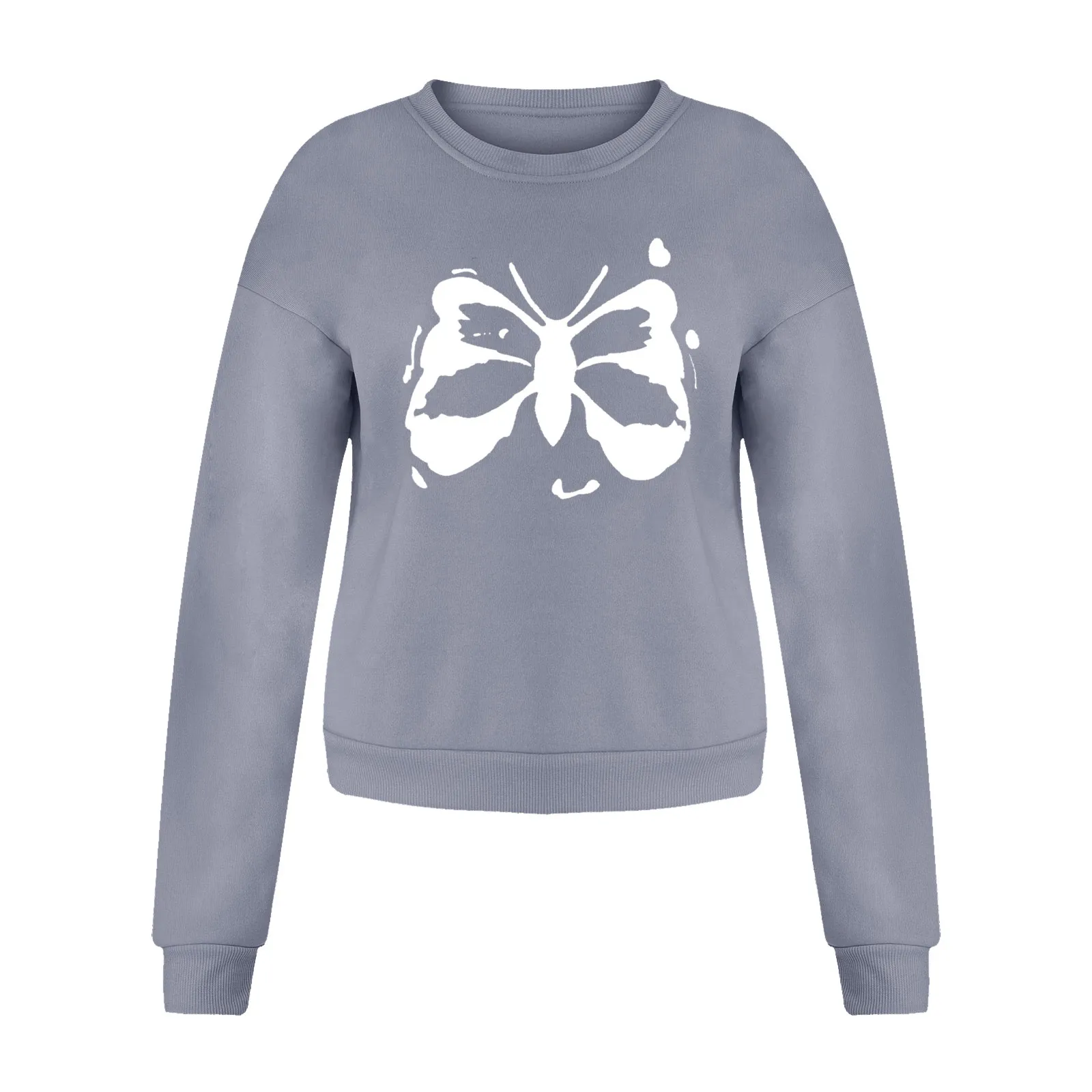 Женские Повседневное с длинным рукавом свитшот с круглым вырезом с принтом в виде бабочек, Свободный Топ, одежда для мальчиков
