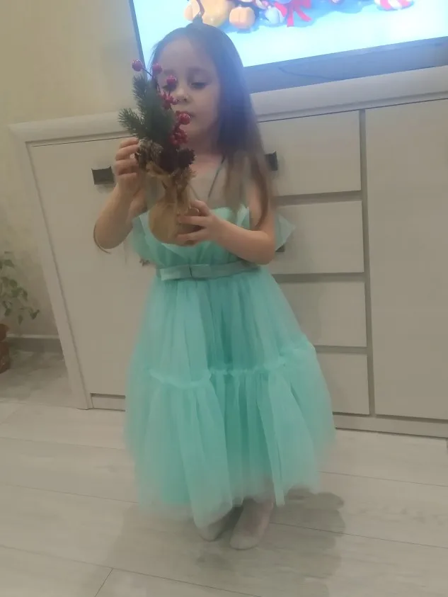 очень красивое, воздушное. Быстрая доставка, 13 дней до Пензы. Размер 4Т чуть великовато на девочку 3,5 года, рост 101 см.