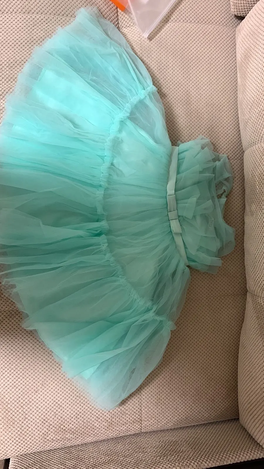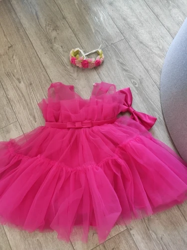 Доставка в Минск 2 месяца, но оно того стоило!!! Платье суперское, цвет очень красивый, пышное, строчки все ровные. Под фатином атлассная юбочка, атласный бант отстегивается, можно и на волосы приспособить для полного образа)))