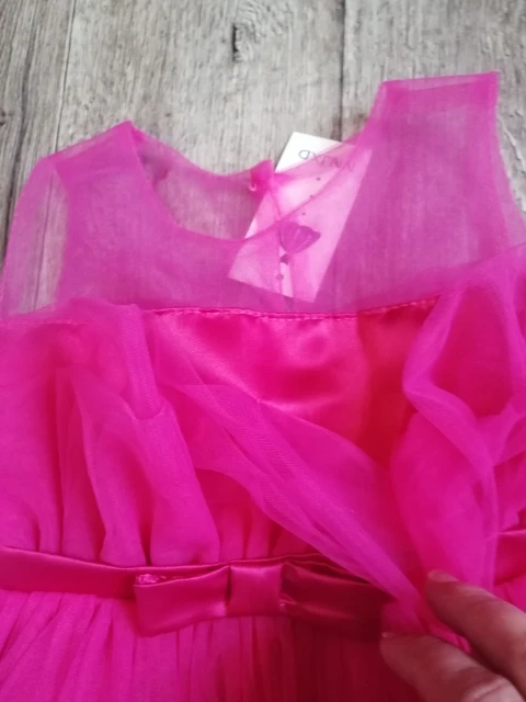 платье вполне приличное,правда очень много торчащих ниток. есть некрасивые нитки внутри. ткани,т.е.их не отрежешь,а т.к.ткань- фатин, прозрачный,то их видно ,а это портит внешний вид