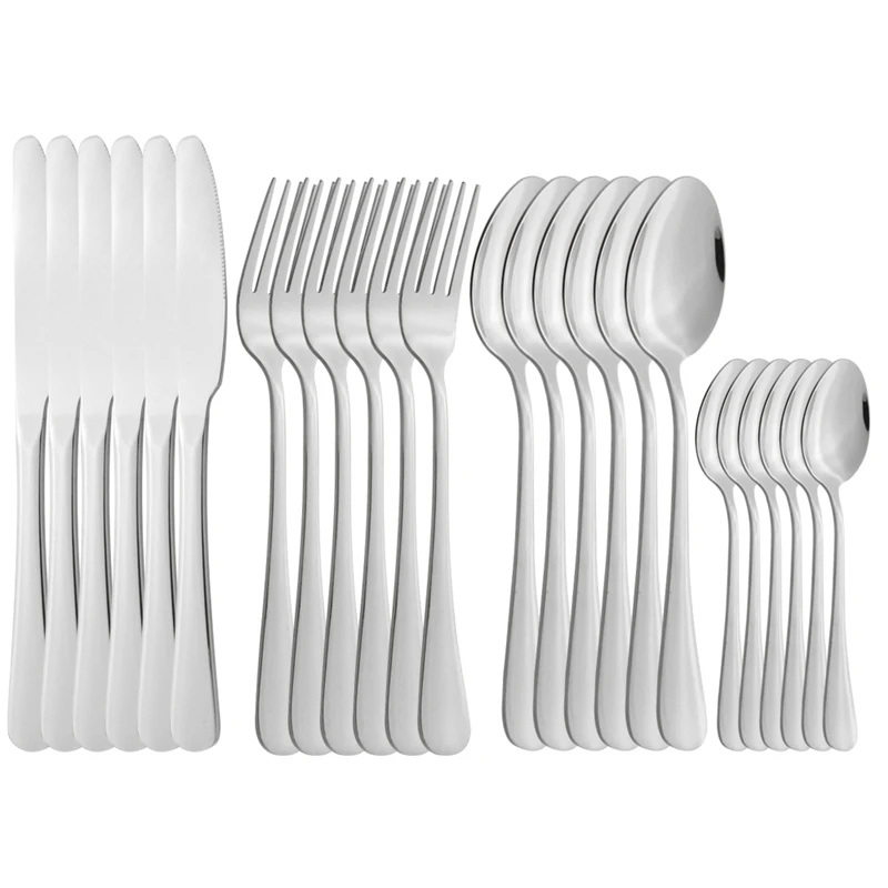 * Материал: нержавеющая сталь 304* Включая:6 * Нож для ужина,6 * столовая ложка,6 * вилка для ужина,6 * чайная ложка