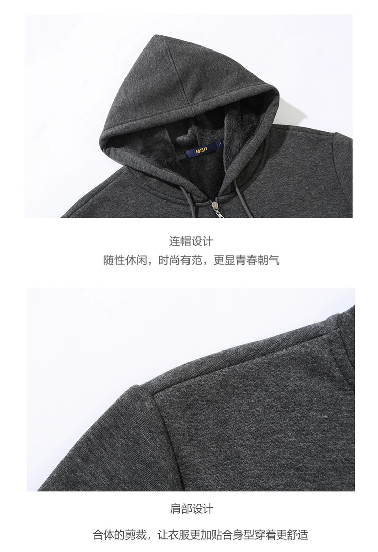 Мужская толстовка с капюшоном на молнии, с длинным рукавом