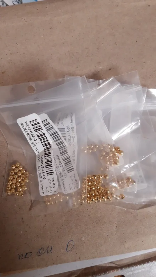Пришло вовремя. Полностью соответствует описанию. Качество очень хорошее, количество в норме. Прорези ровные, жало крючка проходит свободно, облой и заусенцы отсутствуют. Заказывал два вида 3,5мм и 4мм. для изготовления безнасадочных мормышек для отвесного лова и мормышинга. Вес 3,5мм шарика 0,3 - 0,32гр. Вес 4мм шарика 0,5 - 0,51гр. По нашим условиям лова самое то, что надо. Паяются судя по отзывам других покупателей хорошо, качество покрытия и коррозионную устойчивость будем проверять на водоеме. Покупкой доволен, продавца рекомендую.