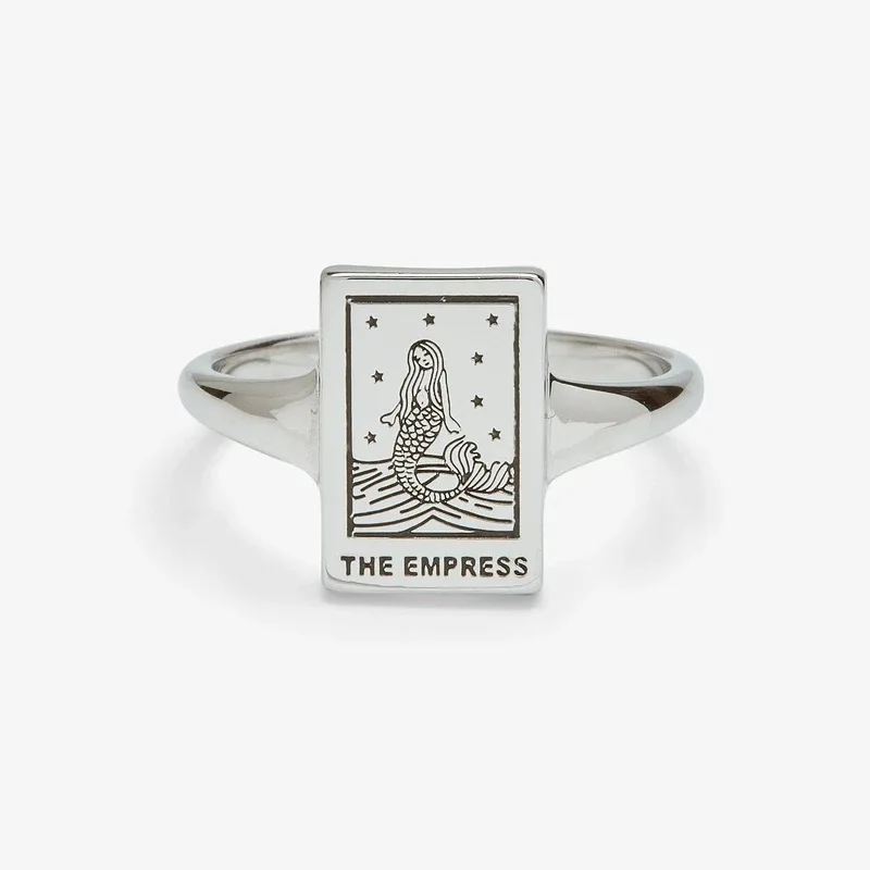 Кольцо женское готическое с гравировкой в виде русалки, регулируемое