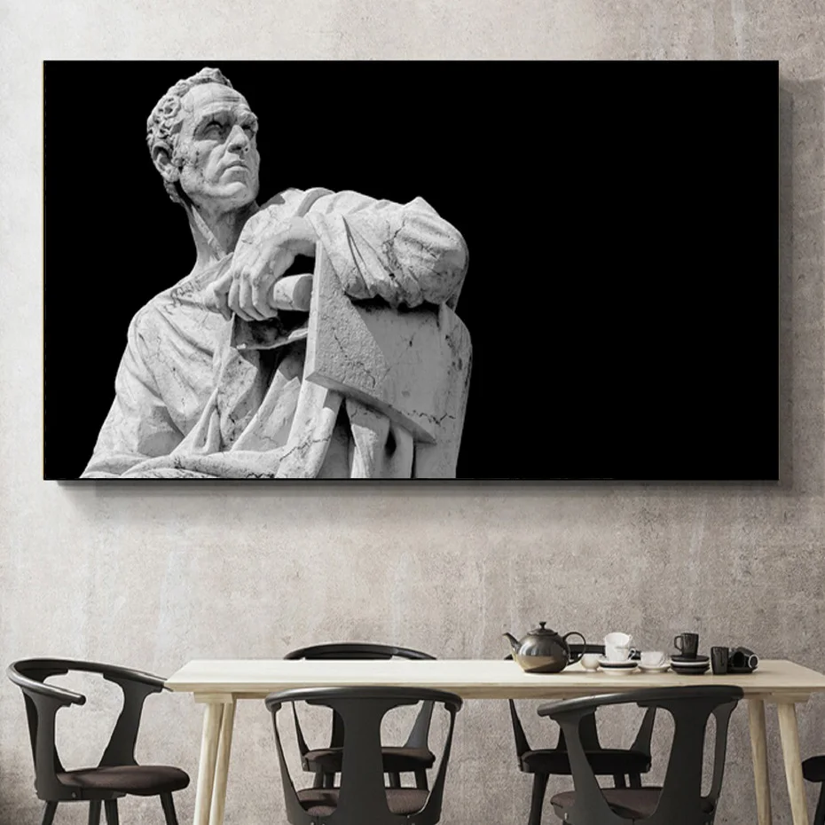 Черно-белая скульптура человека, леди, художественные плакаты и при...