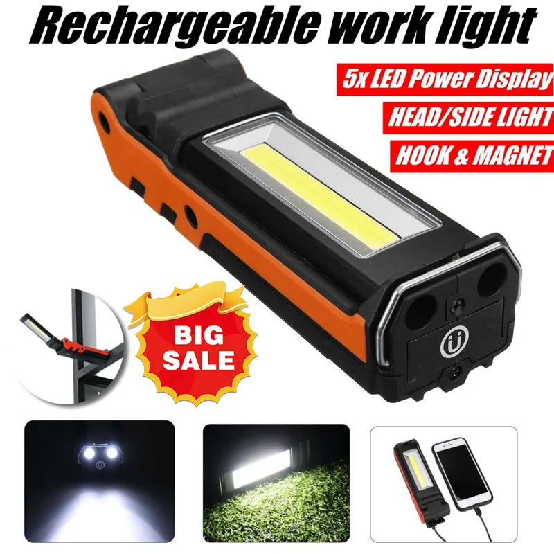 Магнитная лампа для осмотра с крючком, внешний аккумулятор USB, перезаряжаемая батарея 2000 мАч 18650