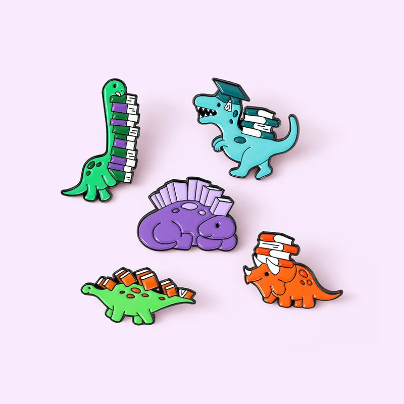 Эмалированная брошь в виде динозавра, значок на лацкан в виде книги...
