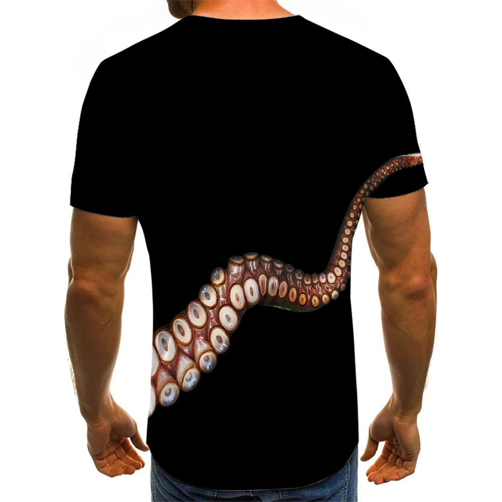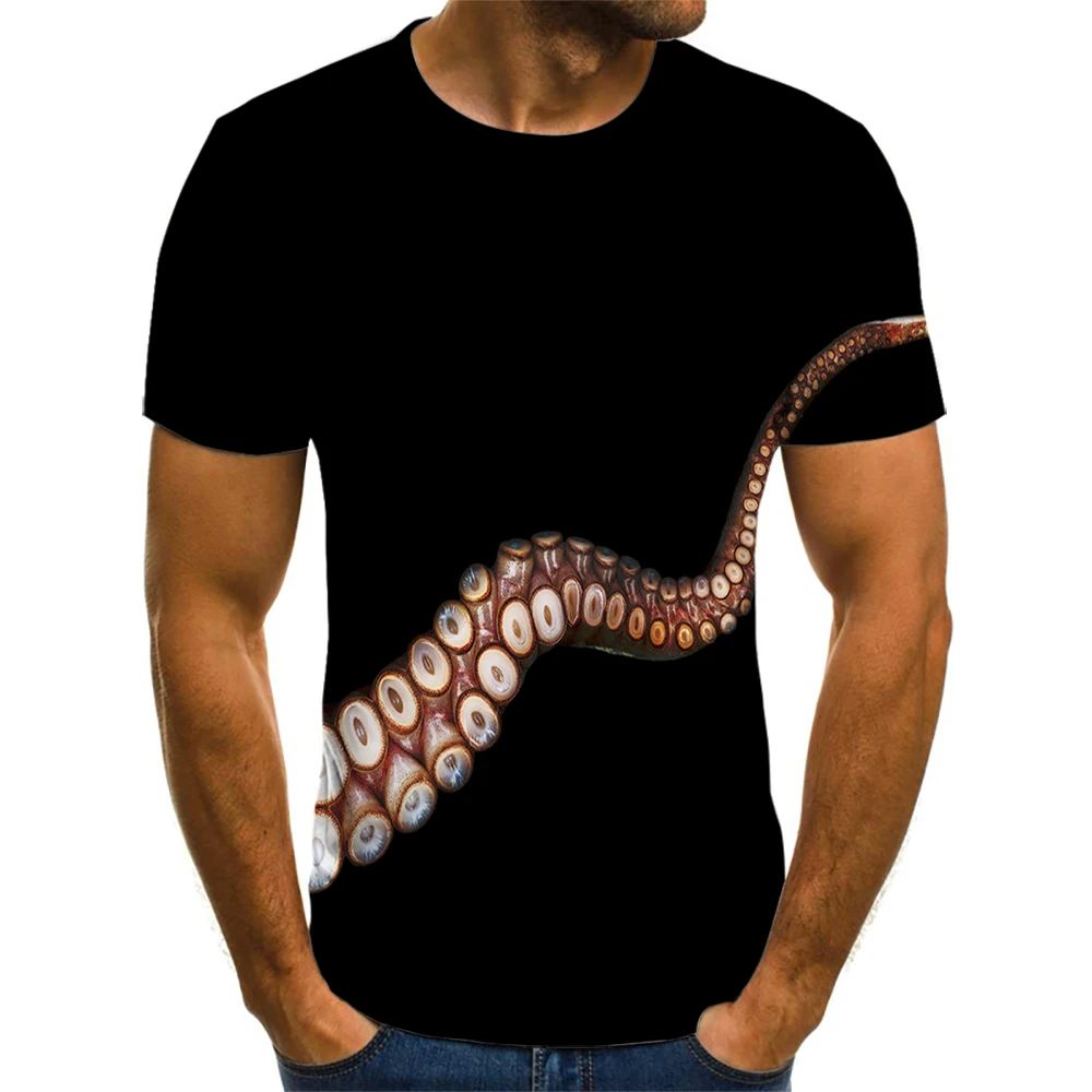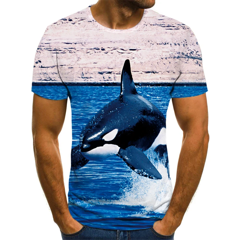Футболка мужская, с принтом в виде морских рыб, с круглым вырезом и коротким рукавом