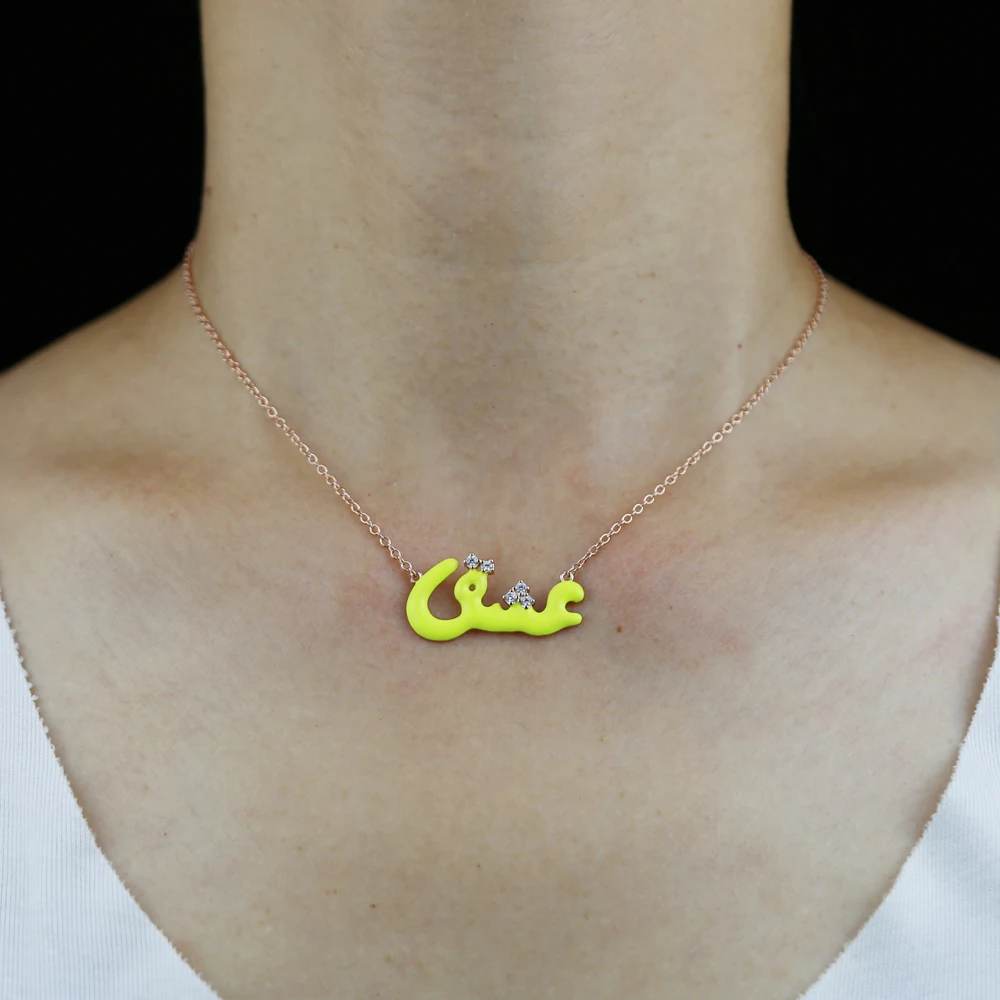 Ожерелье с неоновым эмалированным кулоном с буквами Micro Pave 5A C...