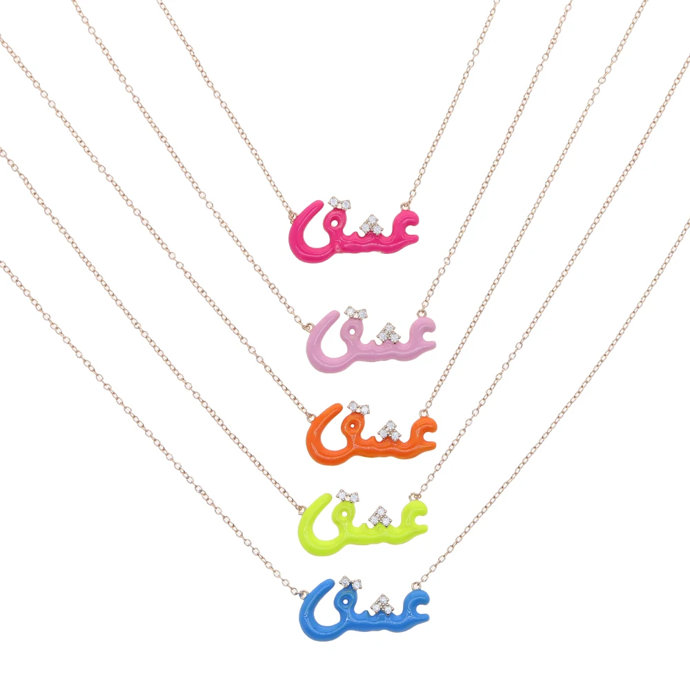 Розовое золото цвет конфетный неоновый цвет красочная эмаль 2021 модное женское колье для девушек арабское слово БУКВЕННОЕ ожерелье с подвеской