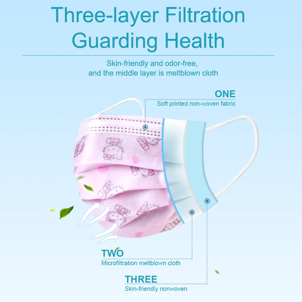 Одноразовые Детские маски 10-200 шт., Детские маски, розовые Мультяшные нетканые тканевые 3-слойные фильтры, Пылезащитная маска для лица