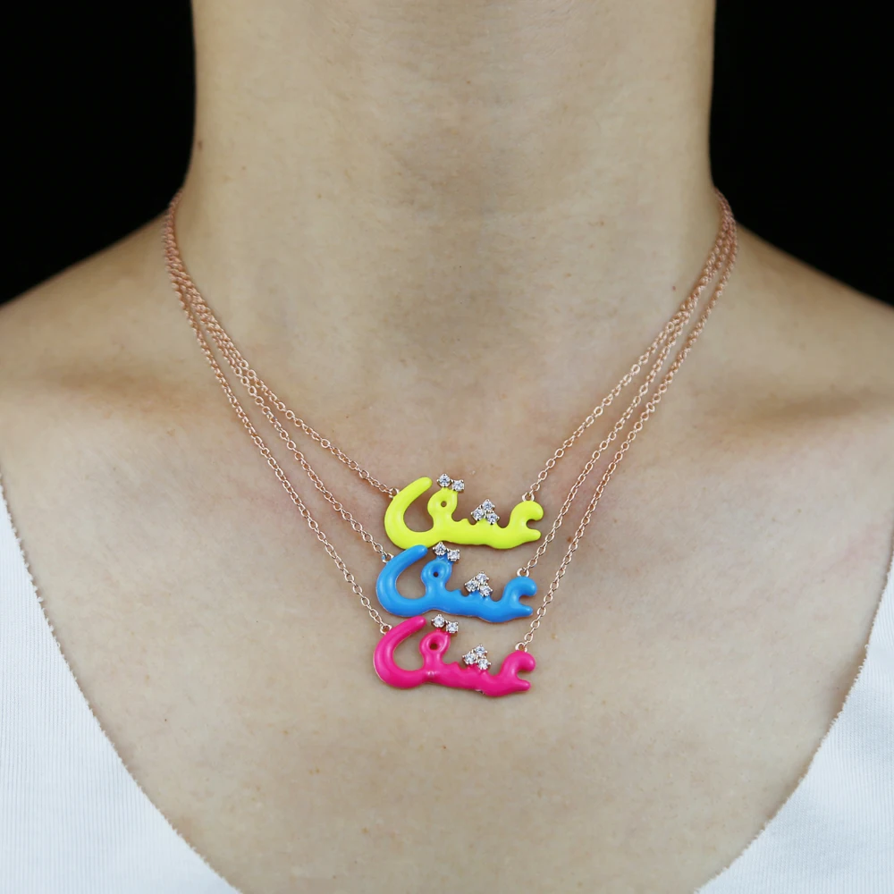 Ожерелье с неоновым эмалированным кулоном с буквами Micro Pave 5A C...