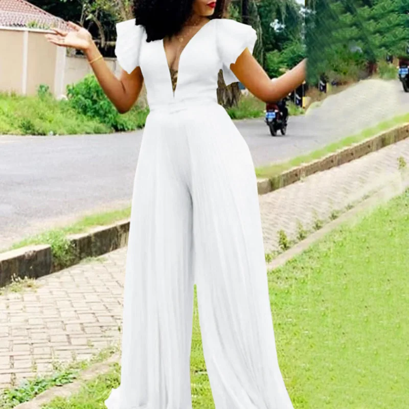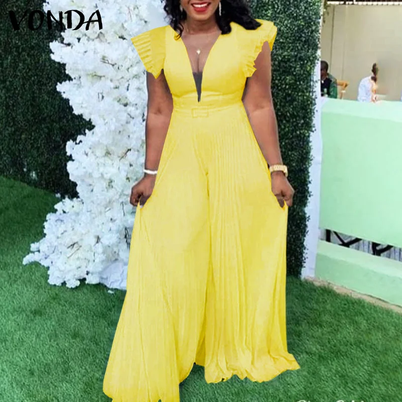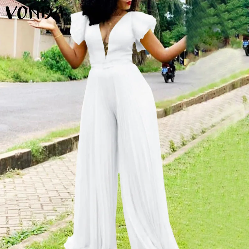 Женские Элегантные праздвечерние чные комбинезоны 2022 VONDA, комбинезоны с глубоким V-образным вырезом, повседневные Комбинезоны с широкими штанинами, женские брюки палаццо, Женские панталоны