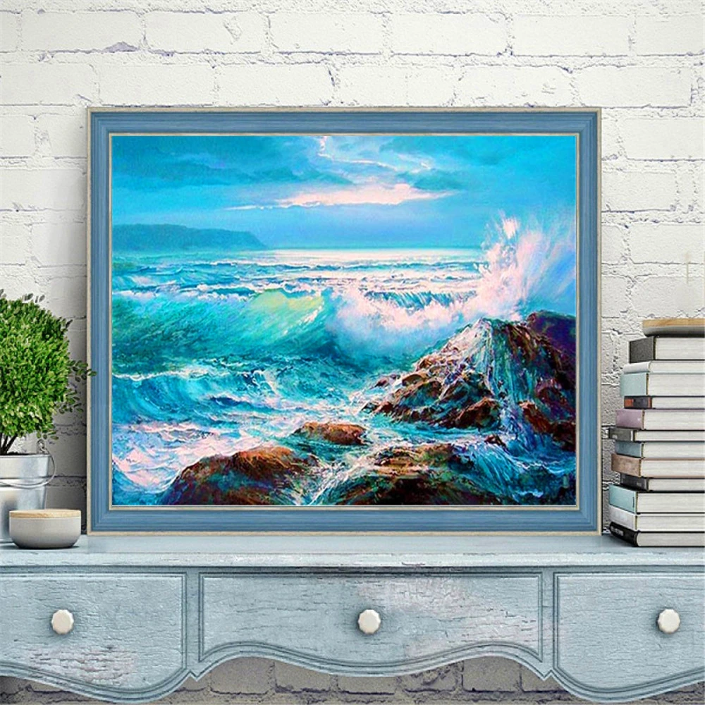 HUACAN Раскраска по номерам морские пейзажи для взрослых DIY рамка краска по номерам море на холсте украшение дома 50х65см