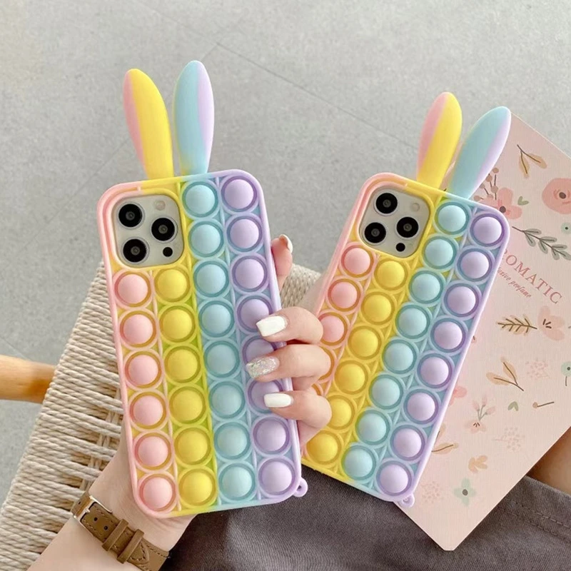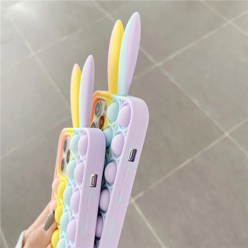 Pop Fidget Toys чехол для iPhone 12 Pro X XR XS Max 6 7 8 Plus SE 2 для снятия стресса с заячьими ушками пресс мягкий TPU Capas для iPhone 11