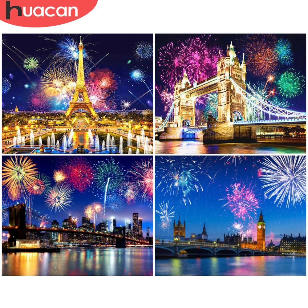 HUACAN картина по номеру фейерверк пейзаж для взрослых DIY картина по номерам башня мост акрил на холсте украшение дома